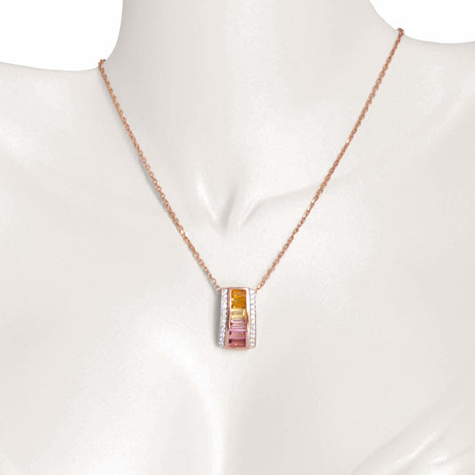 18K Gold Pink Tourmaline Iolite Diamond Pendant Necklace