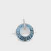 Circle Blue Topaz Diamond Pendant — a refined blend of elegance and color. Showcasing a gradient of tapered Blue Topaz gemstones in a sleek channel setting, the pendant transitions from light to deep hues with seamless beauty. Encircled by pavé-set diamonds, it sparkles with every movement, creating a striking play of light. Crafted in 14K gold and customizable in yellow, rose, or white gold, this pendant is a timeless symbol of individuality and style.