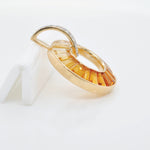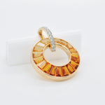 Circle Citrine Diamond Pendant — a radiant expression of warmth and elegance. Showcasing a seamless gradient of tapered Citrine gemstones, this pendant transitions from soft golden hues to deep amber tones in a sleek channel setting. Framed by pavé-set diamonds, it sparkles with every movement, adding a touch of timeless glamour. Crafted in 14K gold and customizable in yellow, rose, or white gold, it’s the perfect piece for those who appreciate refined beauty with a vibrant twist.