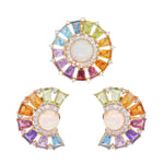 Experience a kaleidoscope of color and charm with the 14K Gold Circle Rainbow Ferris Wheel Set. Featuring a pendant and matching earrings, this vibrant set showcases luminous opals at the center, glowing with shifting iridescence. Each opal is framed by a halo of prong-set diamonds and encircled by a radiant Ferris wheel-inspired array of rainbow gemstones—Blue Topaz, Peridot, Citrine, Garnet, Rhodolite, and Amethyst. The pendant stuns with a full-circle burst of color, while the earrings mirror the look with a graceful semi-circle silhouette. Crafted in rich 14K gold, this joyful, eye-catching set is perfect for collectors and color lovers alike.