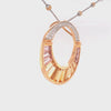 Embrace timeless elegance with this 14K Rose Gold Citrine & Peach Tourmaline Pendant Brooch, inspired by the grandeur of Egyptian-era jewelry. Showcasing a warm gradient of 7.65 carats of hand-selected citrine and peach tourmaline, the design flows in a graceful arc, enhanced by a sparkling pavé-set diamond accent. The tapered baguette gemstones are expertly channel-set using a custom silver mold dye, ensuring perfect symmetry and a flawless finish. This versatile piece can be worn as a pendant or pinned as a brooch, offering refined sophistication for any occasion.