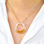 A tribute to timeless elegance, this exquisite Cleopatra Citrine Pink Tourmaline Set features the warm glow of citrine and the vibrant charm of pink tourmaline, illuminated by the brilliance of diamonds—all set in luxurious 14K gold. Inspired by Cleopatra’s regal splendor, the gemstones are meticulously taper baguette-cut and channel-set, creating a seamless flow of color and radiance. Designed for versatility, the pendant can also be pinned as a brooch, making it a striking statement for any occasion.
