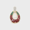 Make a bold statement with this luxurious 14K Gold Doorknocker Garnet Green Tourmaline Pendant. The elegant drop-shaped pendant features a captivating doorknocker design, showcasing a seamless gradient of vibrant, caliber-cut stones in a sleek channel setting. A brilliant pear-shaped diamond setting adds an eye-catching sparkle, while the graceful drop shape enhances its fluidity and charm. Crafted with exceptional artistry, this necklace exudes opulence, elegance, and individuality.
