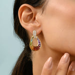 A true masterpiece of color and craftsmanship, this 14K Gold Rainbow Doorknocker Jewelry Set radiates vibrant elegance. The gracefully designed doorknocker shape showcases a seamless blend of Aquamarine, Blue Topaz, Peridot, Citrine, Red Garnet, Rhodolite, and Amethyst, each meticulously cut to enhance its brilliance. Accentuated by sparkling diamonds, this set embodies luxury and individuality, making it a striking statement for both casual and formal occasions.