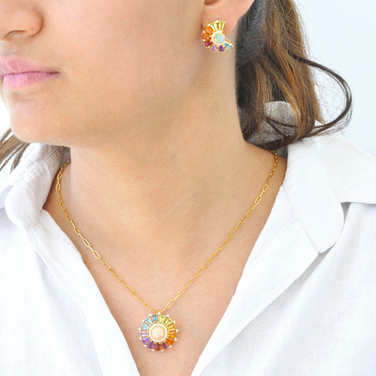 Circle Peridot & Blue Topaz Ferris Wheel Pendant