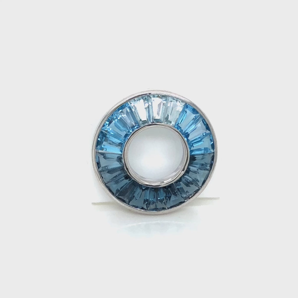 Elevate your elegance with this 18K Gold Circle Blue Topaz Pendant, a stunning masterpiece that embodies sophistication and timeless charm. This pendant features a radiant blue topaz gemstone array, meticulously set in a sleek channel setting within a lustrous 18K gold circular frame, offering a seamless and refined look. The mesmerizing blue topaz gemstones display a captivating spectrum of shades, shifting from deep azure to brilliant sky blue, evoking the tranquility of the ocean and the brilliance of clear skies. Their flawless channel setting enhances the pendant’s seamless design, ensuring both durability and an elegant aesthetic. Expertly crafted with precision and care, this pendant reflects exceptional artistry and uncompromising quality. Its understated yet classic design makes it an effortlessly versatile accessory, perfect for both casual and formal ensembles.