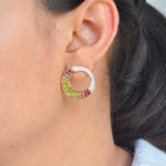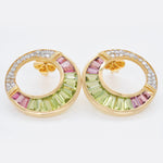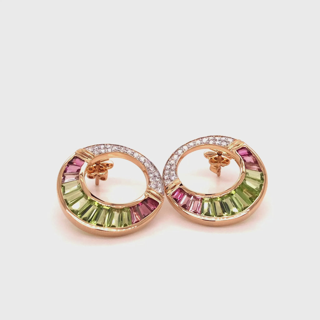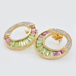 Indulge in luxury with 14K Gold Cleopatra Peridot Pink Tourmaline Stud Earrings, a breathtaking fusion of royal elegance and vibrant beauty. Inspired by Cleopatra’s legendary opulence, these earrings feature a captivating contrast of vivid peridot and delicate pink tourmaline, evoking the grandeur of ancient Egypt. Meticulously crafted with tapered baguette-cut gemstones, the channel setting creates a seamless flow of color, enhancing brilliance and depth. A cascade of brilliant diamonds adds a regal touch, making these earrings a timeless statement of sophistication, perfect for any occasion—grand or everyday.