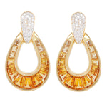 Discover a journey of art and optimism with 14K gold citrine doorknocker earrings. Meticulously crafted, these earrings showcase a blend of art, color, and culture, featuring a gradient of lustrous citrines, hand-picked and caliber-cut for fiery brilliance. Pave-set diamonds add sophistication, creating a captivating display of joy and positivity. Elevate your style with these exceptional earrings, a radiant expression of happiness and a reflection of your inner light—an exquisite addition to your collection.