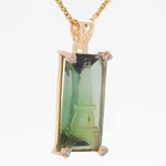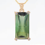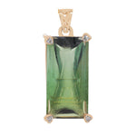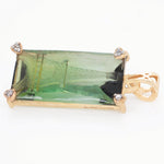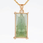Crafted in radiant 14K Yellow Gold, this stunning pendant captures the essence of Parisian elegance with a beautifully hand-carved green tourmaline shaped like the iconic Eiffel Tower. The gemstone is set in delicate prongs and accented with sparkling diamonds in heart-shaped settings, adding a romantic and refined touch. A true celebration of love and craftsmanship, this piece is perfect for those who appreciate unique design and timeless beauty.