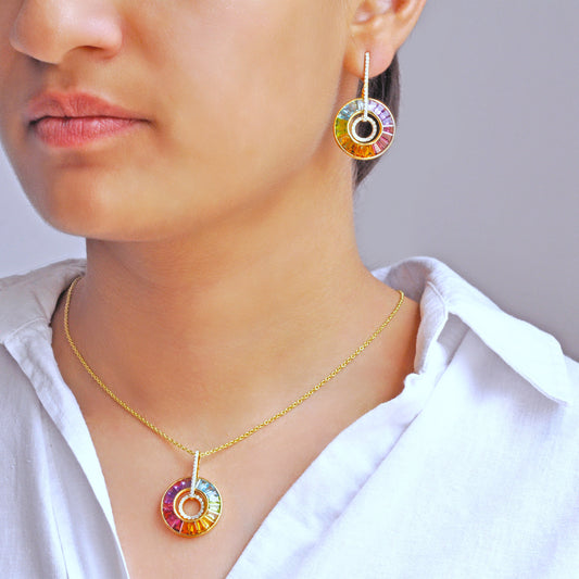 Circle Rainbow Diamond Earrings
