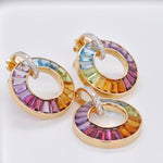Experience the vivid brilliance of this 14K Gold Circle Rainbow Set, a stunning fusion of color, elegance, and artistry. Meticulously crafted in luxurious 14-karat gold, this breathtaking set showcases a radiant circular design, adorned with channel-set gemstones in a mesmerizing rainbow spectrum. Each piece features a dazzling array of Aquamarine, Blue Topaz, Peridot, Citrine, Garnet, Rhodolite, and Amethyst, beautifully arranged to create a vibrant celebration of nature’s beauty. Encircling these luminous gemstones, pavé-set diamonds shimmer with an ethereal glow, enhancing the elegance and brilliance of the design. The harmonious blend of bold colors and celestial sparkle makes this set a timeless masterpiece.