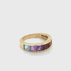Presenting the exquisite Rainbow Eternity Half Band Ring — a radiant celebration of color, craftsmanship, and meaning. Handcrafted in luxurious 18K gold, this refined half-band ring showcases a stunning row of natural gemstones, channel-set for a sleek and seamless finish. Featuring a vivid arrangement of Citrine, Garnet, Rhodolite, Blue Topaz, and Amethyst, each gemstone is carefully selected for its brilliance, cut, and color. The design creates a harmonious rainbow effect that symbolizes life's vibrant journey and the enduring beauty of love and commitment.