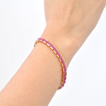 Immerse yourself in the rich elegance of this 18K Gold Tennis Bracelet - Ruby Octagon Edition, featuring 28 identical octagon step-cut rubies, each measuring 6x4mm and totaling 16.65 carats. Set in sleek half-bezel channels, these vivid red rubies radiate fiery brilliance and timeless charm. Expertly crafted with flexible back-linking and a secure double-clasp lock, the bracelet offers both comfort and sophistication. The deep red hue and exceptional luster of the rubies make this piece an irresistible symbol of luxury—perfect for everyday elegance or special occasions. A true celebration of enduring beauty and unforgettable moments.