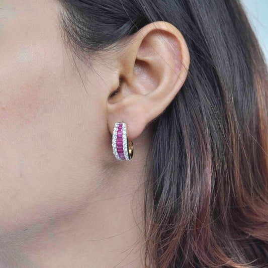 Ruby Diamond Huggie Hoop Earrings
