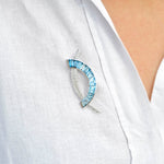 Introducing the exquisite 14K White Gold Signature D Blue Topaz Pendant Brooch—a true masterpiece of craftsmanship and elegance. Meticulously crafted in radiant 14-karat white gold, this signature design showcases a sleek "D" shape adorned with expertly channel-set blue topaz gemstones, radiating serene beauty. The pavé-set diamonds add a dazzling brilliance, enhancing the piece’s refined allure. Versatile and timeless, this standout creation can be worn as both a pendant and a brooch, embodying the perfect harmony of artistry and sophistication.