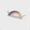 Art, color, and culture converge in this original Vaibhav Dhadda creation — a contemporary 14K gold brooch-pendant designed with calibre-cut tapered baguette multicolored gemstones and diamonds. Each hand-selected gemstone, including Citrine, Peridot, Tourmaline, Amethyst, Topaz, Iolite, and Garnet, is precisely calibre-cut in varying tapered baguette shapes to fit the design, enhancing their brilliance and fire. Pave-set diamonds further elevate the piece, adding refined sparkle to the bold color play.