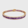 Introducing the 18K Gold Tennis Bracelet - Amethyst Square Edition – a refined fusion of vintage charm and modern elegance. Crafted in luxurious 18K gold, this timeless piece features a striking row of square-cut amethyst gemstones, seamlessly set in a sleek channel setting for a clean, continuous flow of vibrant color. Each amethyst radiates a rich violet hue, perfectly capturing the spirit of Art Deco with its bold lines and geometric precision. The channel setting not only enhances the brilliance of the stones but also offers a smooth, polished finish ideal for daily wear. Whether worn solo or layered, this bracelet adds a sophisticated pop of color to any ensemble – from formal evenings to everyday elegance. A true statement of style and craftsmanship, it's a must-have for those who appreciate timeless design with a contemporary twist.