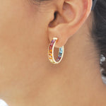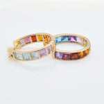 Infuse your style with color and elegance through the Rainbow Hoops Earrings, expertly crafted in 14-karat yellow gold. These contemporary hoops feature a dazzling arrangement of step-cut square gemstones — Amethyst, Rhodolite, Garnet, Citrine, Peridot, and Blue Topaz — all securely channel-set to create a smooth, radiant finish. The clean lines of the step cut enhance each gemstone’s brilliance, while the channel setting ensures stability and allows for a seamless flow of color. Whether worn with a crisp white shirt or a glamorous evening outfit, these earrings offer versatile charm and a vibrant statement.