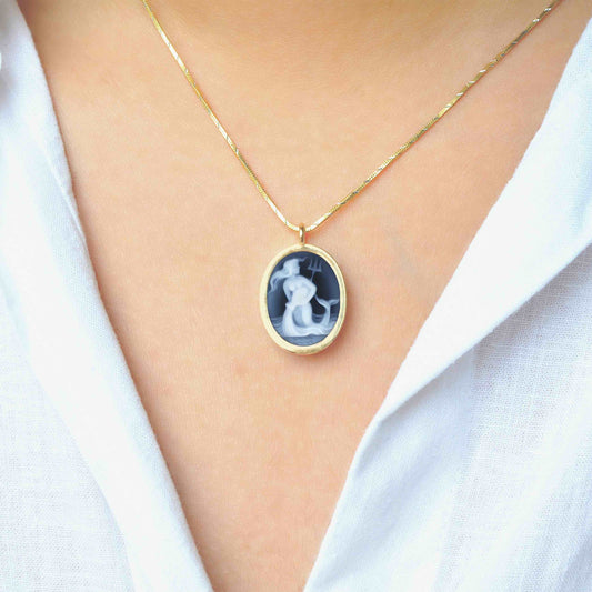 Wendeanhänger aus 14-karätigem Wassermann-Cameo-Sternzeichen mit Schnitzerei