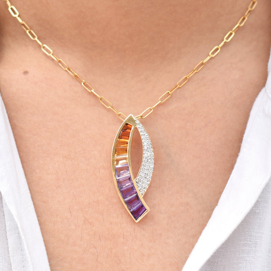 Broche pendentif en diamant améthyste baguette conique épée en or 18 carats