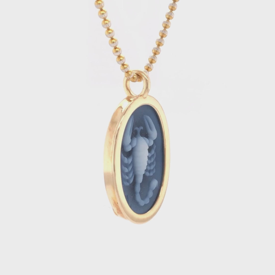Pendentif réversible 14K Scorpion Cameo Carving Zodiac