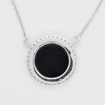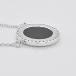 The intricate cameo is encircled by a brilliant halo of shimmering diamonds, which provides a luxurious frame and a radiant sparkle to the piece. Suspended from a slender silver chain with elegant circular connectors, this necklace balances vintage-inspired craftsmanship with a clean, contemporary silhouette. It is a sophisticated statement piece that symbolizes transformation and grace, making it a perfect addition to any refined jewelry collection.