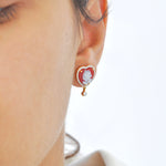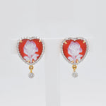 Cameo Flower Heart Stud Earrings
