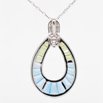 Make a striking statement with this elegant jewelry set, featuring perfectly coordinated doorknocker-style earrings and a pendant. Each piece showcases a mesmerizing blend of tapered baguette-cut blue topaz and peridot stones, expertly channel-set within sleek open teardrop frames of white gold. The refreshing gradient from serene blue to vibrant green evokes a sense of effortless beauty and tranquility. At the top of each design, pavé-set diamonds add a touch of brilliance, enhancing the luxurious feel of the set. Perfect for special occasions or to elevate your everyday style, this set offers a harmonious balance of bold color, fine craftsmanship, and timeless sophistication.