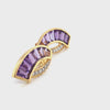 Introducing the Sickle Amethyst Earrings – a radiant fusion of bold design and refined elegance. Crafted in luxurious 18K gold, these sculptural earrings feature a mesmerizing ombré of hand-selected, taper baguette-cut amethysts, transitioning from deep violet to soft lavender in a seamless arc. Channel settings enhance their brilliance, while a sleek strand of pavé-set diamonds adds a graceful curve of sparkle. Inspired by the form of a sickle sword, these ear-clips bring a modern edge to classic glamour.