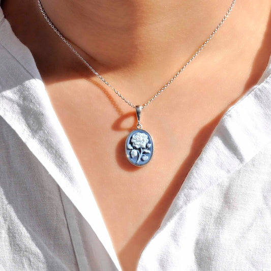 Sterling Silver Rose Cameo Pendant Necklace