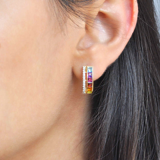 Rainbow Diamond Hoop Earrings